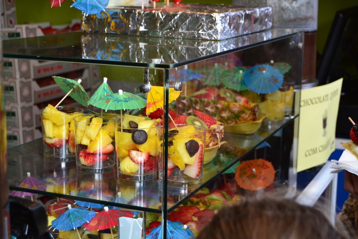 Когда-то шоколад могли позволить себе только очень богатые и знатные. И, пожалуй неудивительно, что фестиваль королевского лакомства устраивается в королевском замке. Царство его Величества Шоколада здесь повсюду. Булочки с шоколадом, фрукты с шоколадом, ликер в шоколадных стаканчиках,  шоколад с имбирем, шоколад со жгучим перцем, шоколад… с шоколадом. Нет, вот сала в шоколаде здесь нет, зато можно попробовать пиццу с шоколадом, гамбургер с шоколадом, курицу в шоколадно-коньячном соусе и закусить это шоколадной салями.