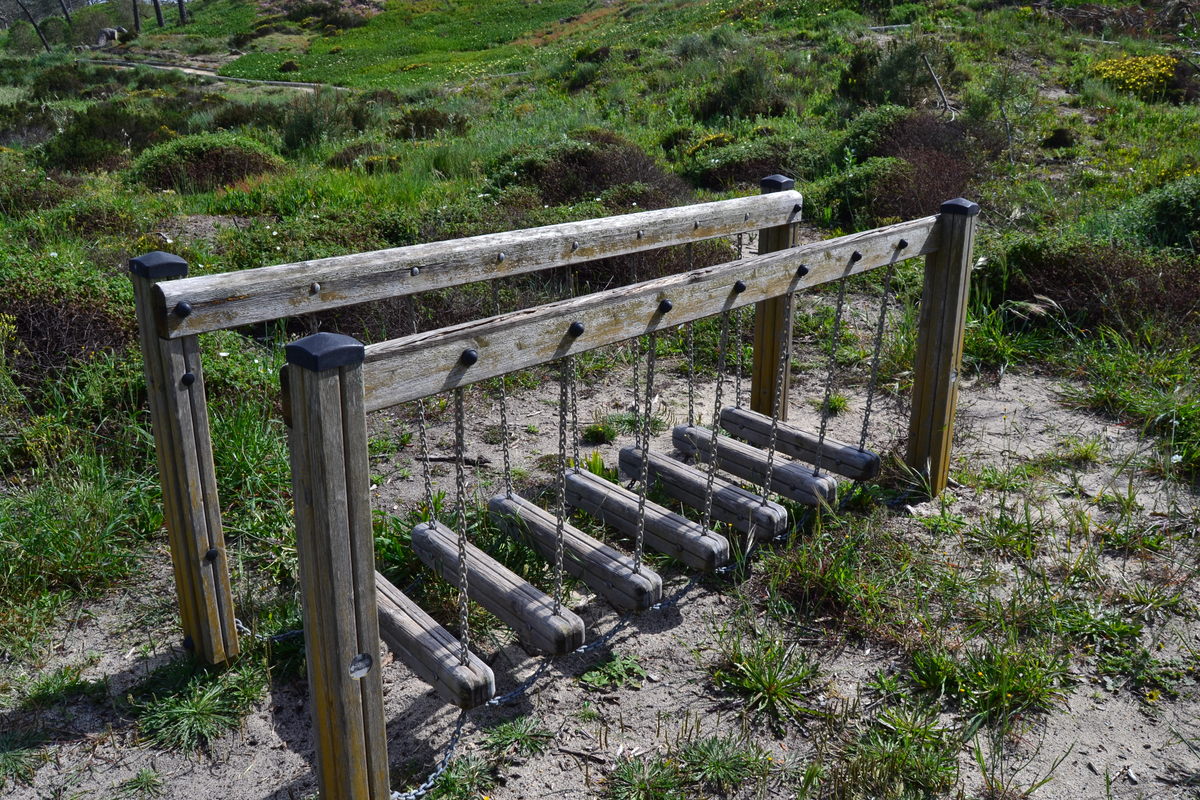 Если пожелаете сделать разминку после бега, то к Вашим услугам небольшие спортивные городки. Не скажу, что такие городки отличаются особым разнообразием спортивных снарядов. А вот c фантазией и выдумкой у организаторов подобных площадок, все прекрасно. Каждый спортивный снаряд пронумерован и называется он “остановка”. Вот это, например, остановка №1 для накачки пресса или попросту пресокачалка. По мне, это больше напоминает кресло для отдыха. Но мы ведь в Португалии. Поэтому занимаемся физкультурой расслабленно.