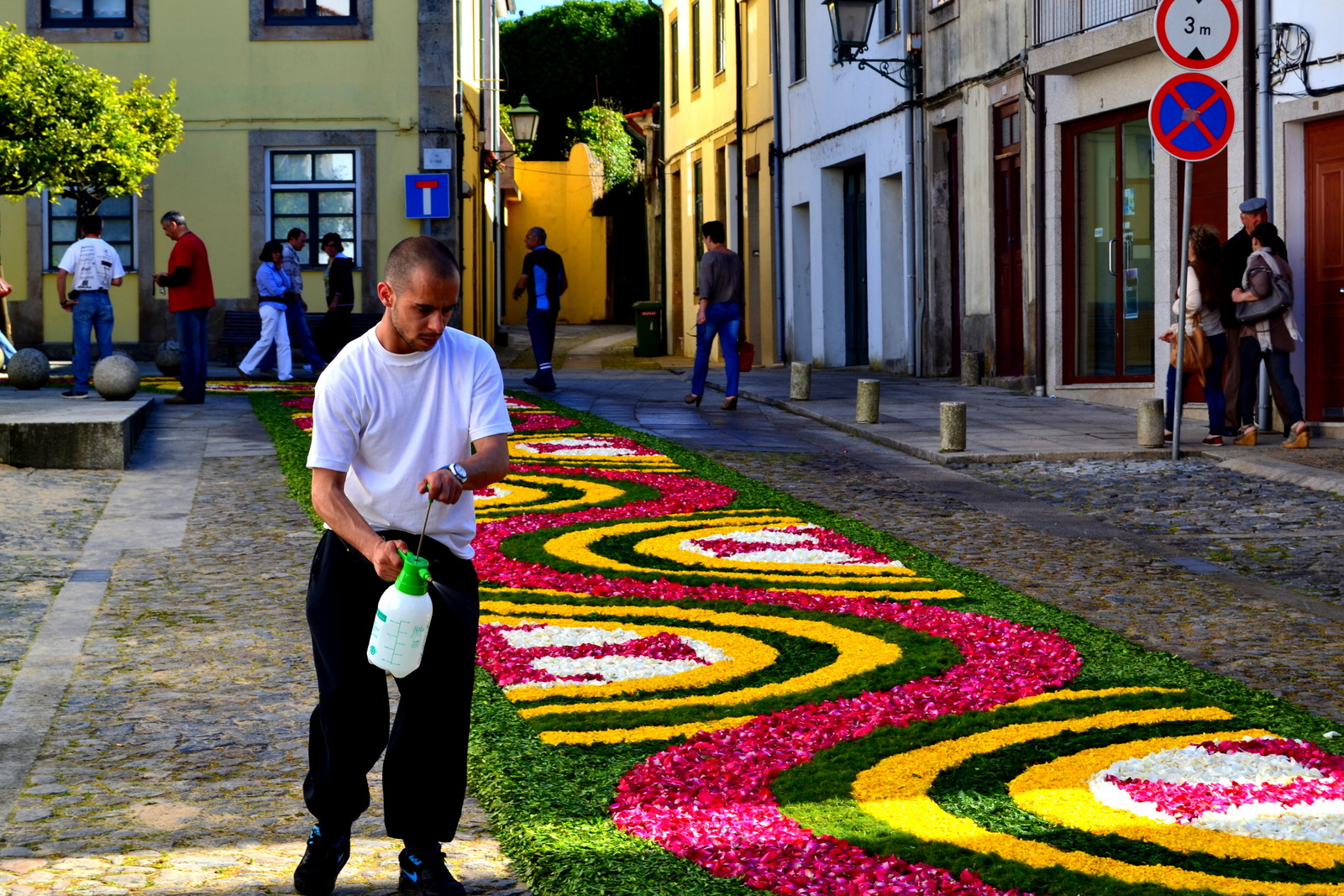 Зрители все прибывают. Они торопятся увидеть и запечатлеть цветочное чудо. Всего через несколько часов, торжественная процессия пройдет по всем улицам городка, по удивительным узорам, и от цветочных ковров останутся лишь воспоминания и легкий аромат....