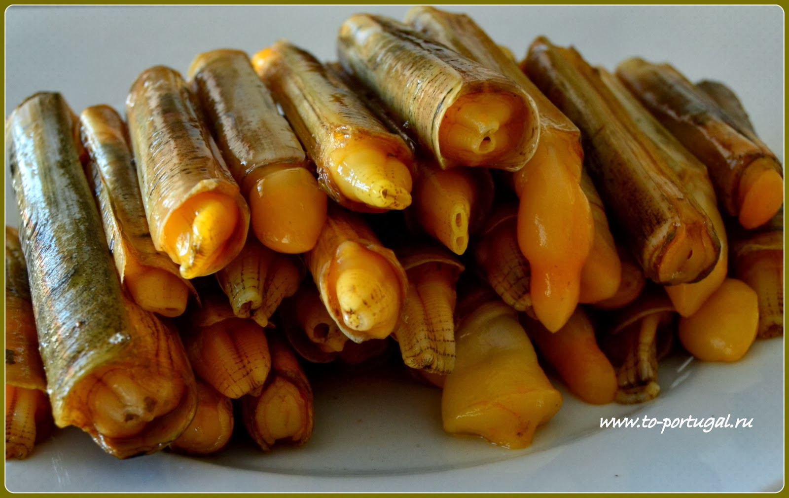 Например, Longueirão. По английски они называются Razor-fish. А по русски нашла такие названия Ножебрюшковые или Кривохвостики. Только не пугайтесь. Вид у них, конечно, не самый привычный. Более того, они вытягивают свои тельца (или как это у них называется) из своих створок, а если прикоснуться к ним, то быстро прячутся обратно. Немного напоминают уменьшенных персонажей из фильма “Чужой”. Но, до чего же они вкусные!