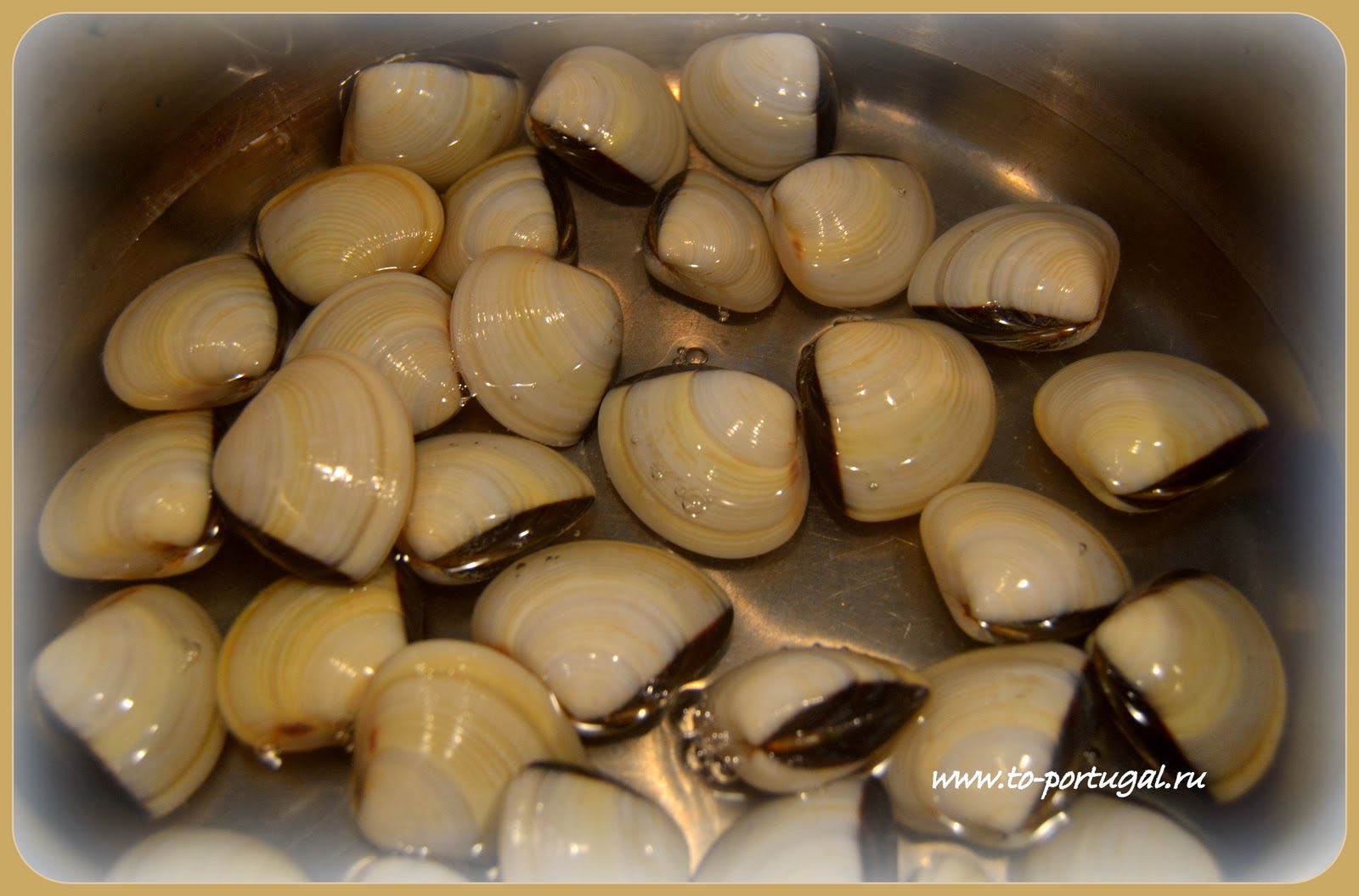 На мой взгляд, приготовление моллюска – дело не столь сложное. Хотя, наверняка некоторые специалисты со мной поспорят. Мне не раз доводилось слышать разные рекомендации от португальцев о приготовлении тех или иных видов. Кто-то скажет, что Ameijoa готовится только с чесноком, а Lambujinha - c луком. Одна продавщица в рыбном отделе советовала, использовать лимонный сок, а соседка моя говорит, что лучше брать винный уксус. Кто-то добавляет белое вино. Рецептов много.