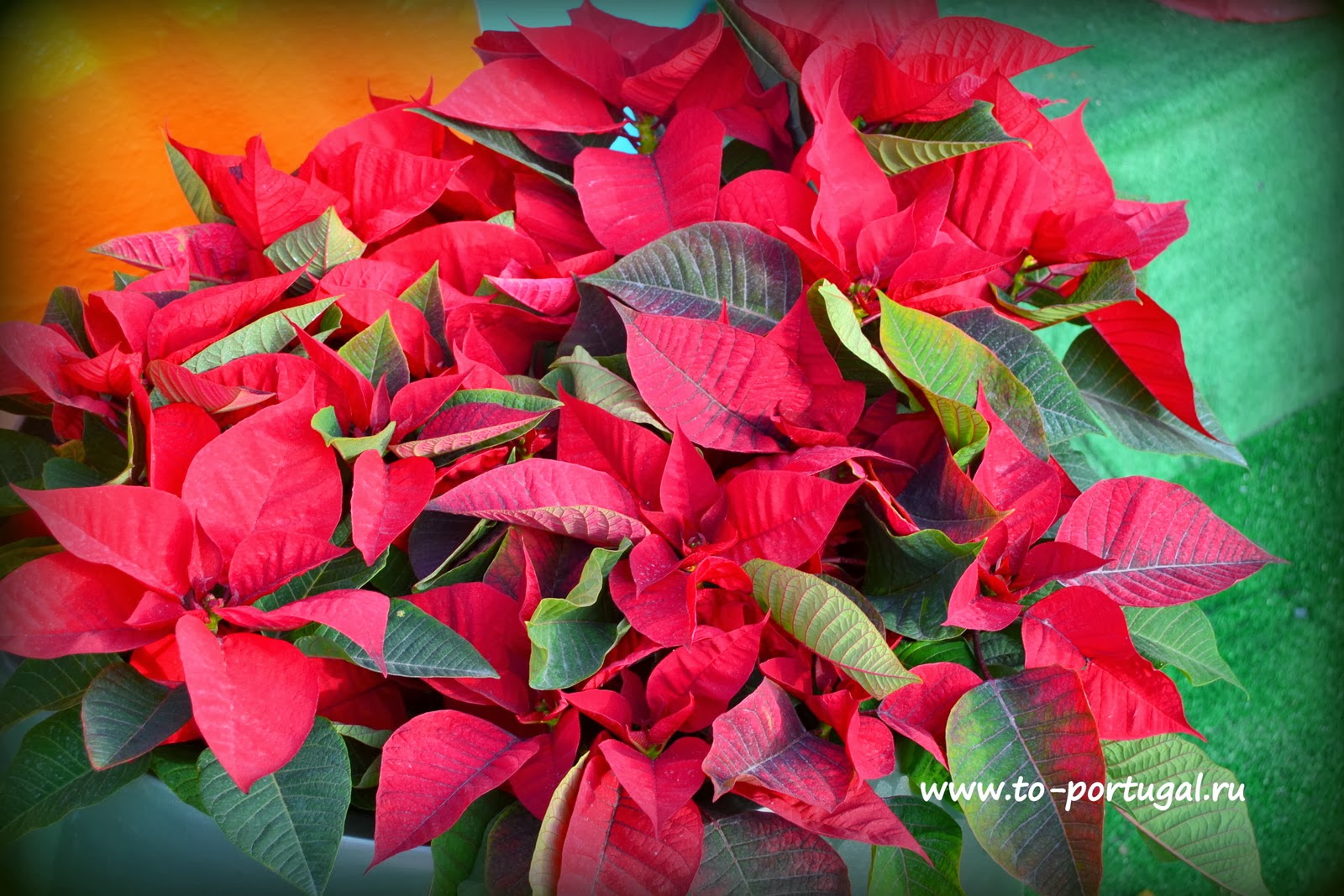 Повсюду в Португалии продаются яркие цветы в горшочках. Здесь принято дарить их на Рождество. По-португальски они называются Poincétia (поинсетия). Хотя есть и другие названия: Звезда Рождества или Прекраснейший из цветов.