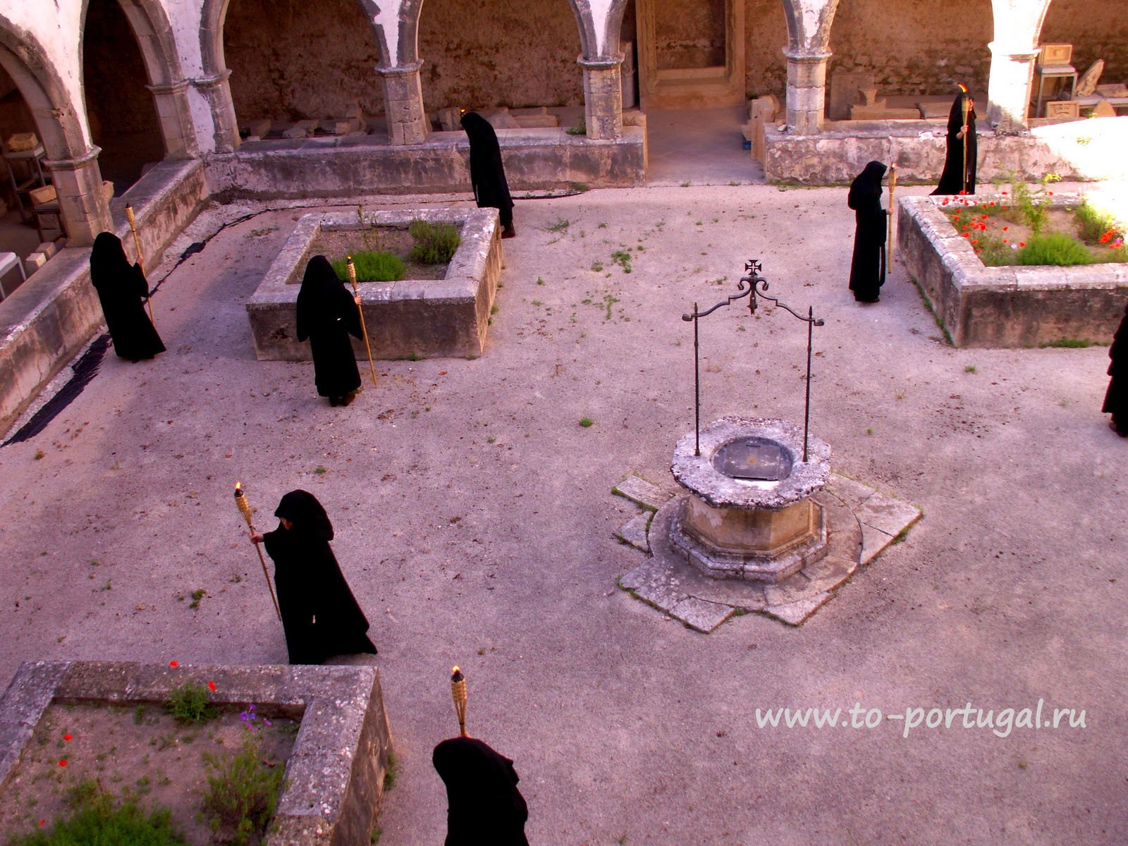 Пьеса “Имя Розы” идет в монастыре Convento de Cristo с 2004 года. Идет она в летнее время по субботам. Несмотря на то, что в программке написано, что продолжительность действия 4 часа 44 минуты, мы пробыли в монастыре больше 6 часов. Мы бегали за актерами по монастырю, как маленькие дети. Трудно подсчитать, сколько мы прошли и трудно вспомнить все залы, комнатки и укромные уголки старого монастыря в которых мы побывали. Как и было обещано, мы увидели такие места, куда в обычное время посетителей не пускают. Мы попробовали настоящую монастырскую кухню и одновременно насладились прекрасной актерской игрой.
