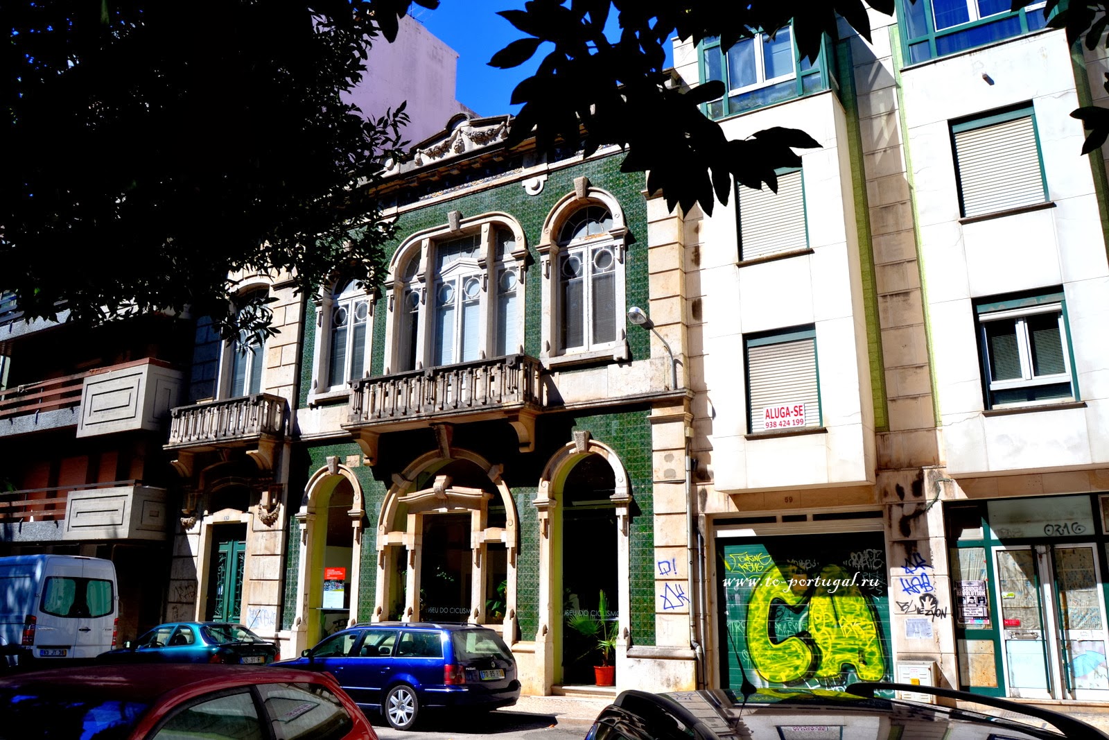 Велосипедный музей расположился в старом доме, которому больше 100 лет. Таких домов в центре Калдаш да Раинья очень много. Некоторые, также как и Королевская Лечебница, ждут реконструкции, некоторые - уже привели в порядок. Большинство домов имеют сто и двухсотлетнюю историю. Многие украшены той самой керамической плиткой. Да, конечно, за пару сотен лет разное случалось и плитка кое-где откололась, кое-где - потрескалась. Но, все же, какое великолепное исполнение! Какое качество работы! И цвет сохранился и блеск.