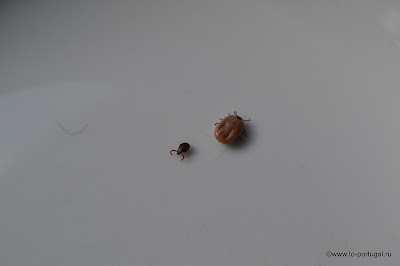 Еще и на себе приносят в дом. Сижу на днях на диване с компьютером и, вдруг, вижу как ко мне клещ идет. Подарок от Лаки))