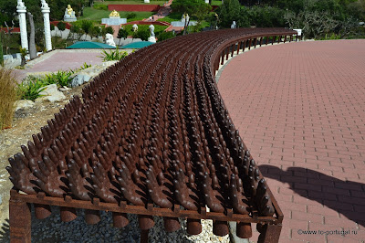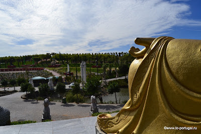 Утренний поезд домчал нас за восемь минут до Калдаш да Раинья, в котором мы провели часа полтора, ожидая поезда до Бумбарала. Затем, нам понадобилось еще минут десять, чтобы доехать до этого города. И еще час, чтобы найти в городе такси. И еще минут двадцать, чтобы дождаться машины — Много работы — поведал нам таксист. Поездка заняла минут семь. И, вот, после, почти трехчасового путешествия, нам открыл свои двери Райский Сад Будды. На осмотр которого у нас оставалось, от силы, часа два. Нужно же было успеть на предпоследний поезд, дождаться таксиста, сделать пересадку….